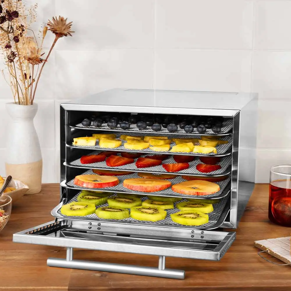 - 5 high-quality stainless steel dehydrating grids (W 25.8 x D 20.5 cm), dehydrate different foods at the same time, but separately from each other
